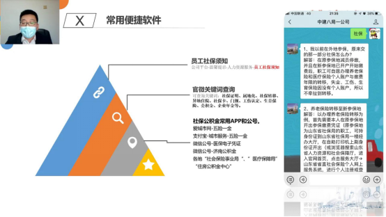 第一期直播課程由公司人力資源部開發(fā)并主播,主題為《中建八一五險二金政策解讀》。直播設有政策宣貫、交流互動等環(huán)節(jié),內(nèi)容通俗易懂,學員積極參與。通過前期策劃與宣傳,直播間觀看人數(shù)2153人,累計點擊量5436人次。同時直播間設置的課程回放功能也可滿足未能參與觀看直播的員工隨時觀看。
