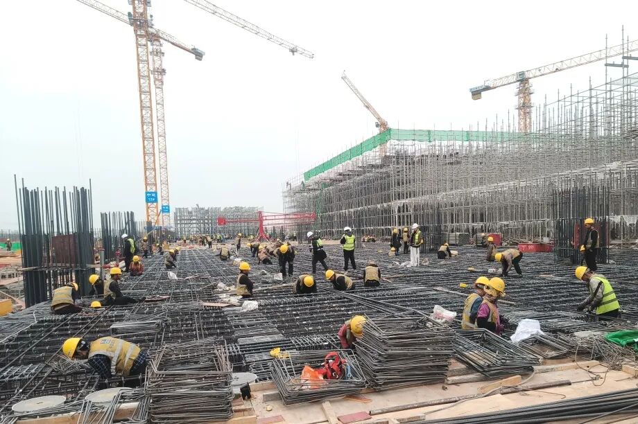 日均綁扎鋼筋約 460 噸,土方累計開挖超 25 萬立方米,混凝土累計澆筑 27 萬立方米,車輛穿梭、機械轟鳴、大干快上,一起走進火熱的施工現(xiàn)場。
