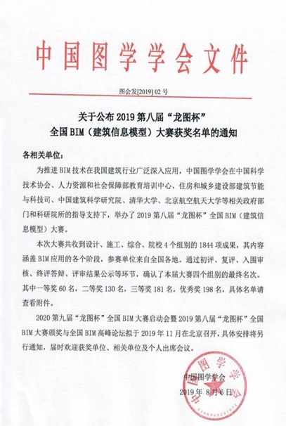 近日,公司在2019第八屆“龍圖杯”全國BIM大賽中,通過精心策劃,合理組織,憑借BIM技術(shù)的深度應(yīng)用與研發(fā)創(chuàng)新,最終獲得3項一等獎、2項二等獎、3項三等獎,共計8項獎項的好成績。