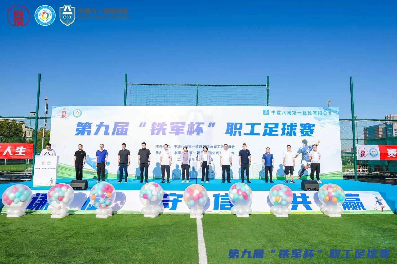 9月6日,中建八一第九屆“鐵軍杯”職工足球賽開幕儀式在山東省體育中心舉行。 中建八局山東分局黨委副書記、紀委書記、工會主席張繼穎,中建八局一公司黨委副書記、工會主席聶麗,工會工作部、安裝公司相關負責人,以及15支參賽隊伍參加。