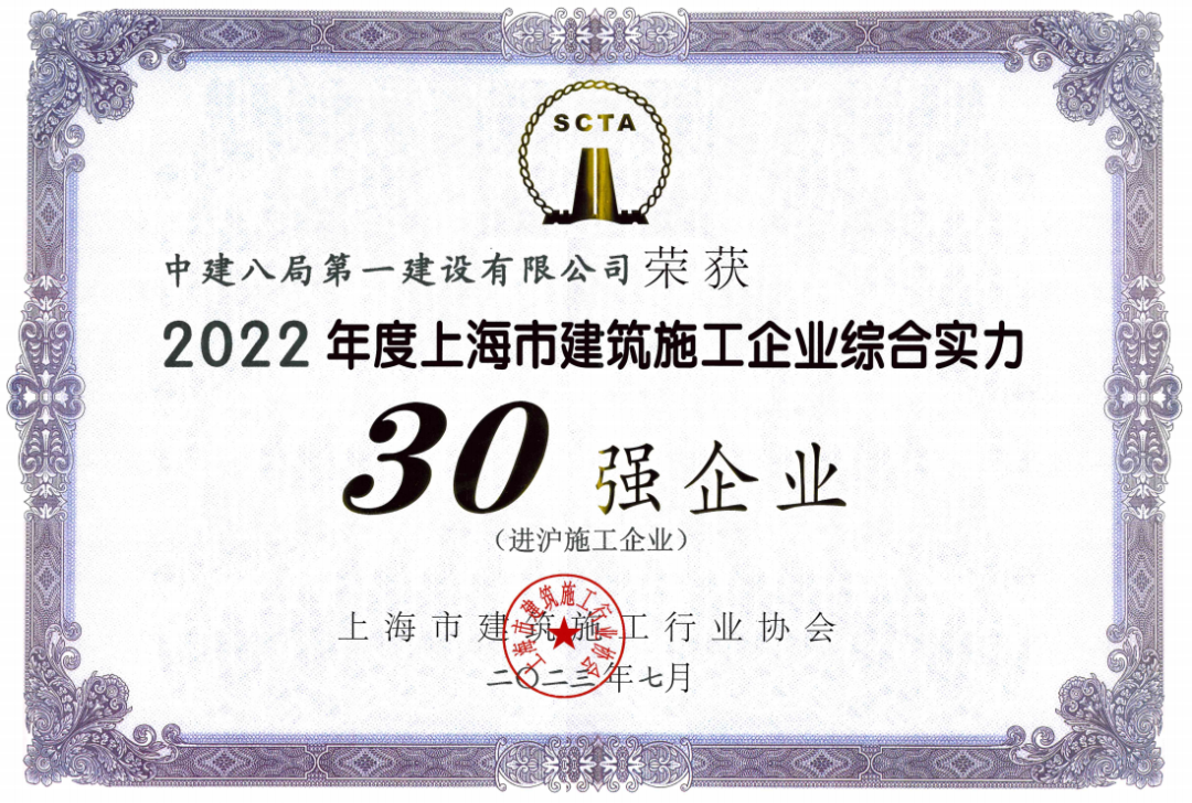 中建八一入選“進(jìn)滬施工企業(yè)30強(qiáng)”