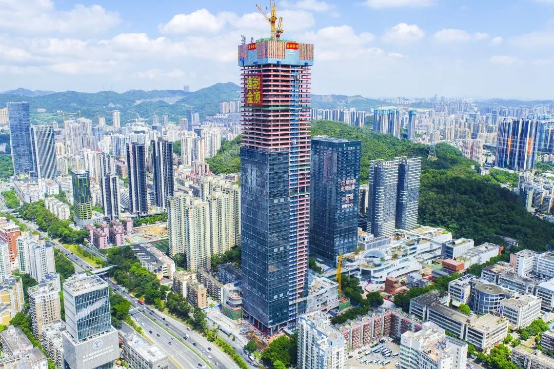 7月27日,深圳粵海置地大廈項(xiàng)目舉辦封頂儀式,項(xiàng)目歷經(jīng)800多天的日夜奮戰(zhàn),迎來全面封頂。