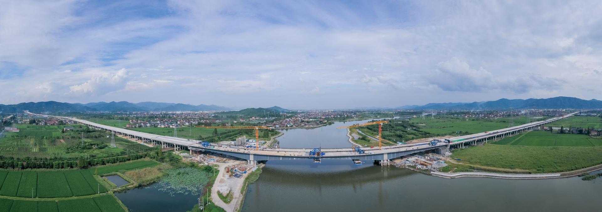 中建八局一公司浙江余姚G228項(xiàng)目郭姆渡大橋合龍