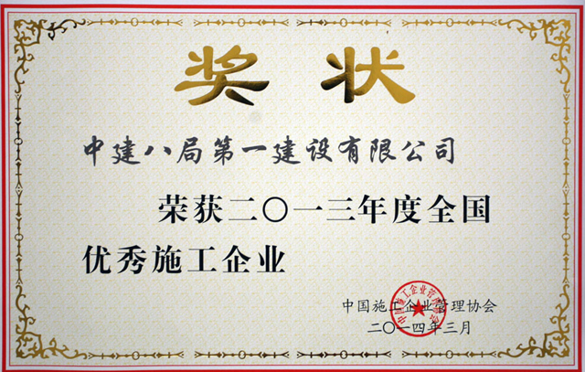 4月19日,中國施工企業(yè)管理協(xié)會第29次年會在南京召開,會議宣布了《關(guān)于宣傳表彰2013年度“全國優(yōu)秀施工企業(yè)”的決定》,公司連續(xù)第六年被評為“全國優(yōu)秀施工企業(yè)”稱號。