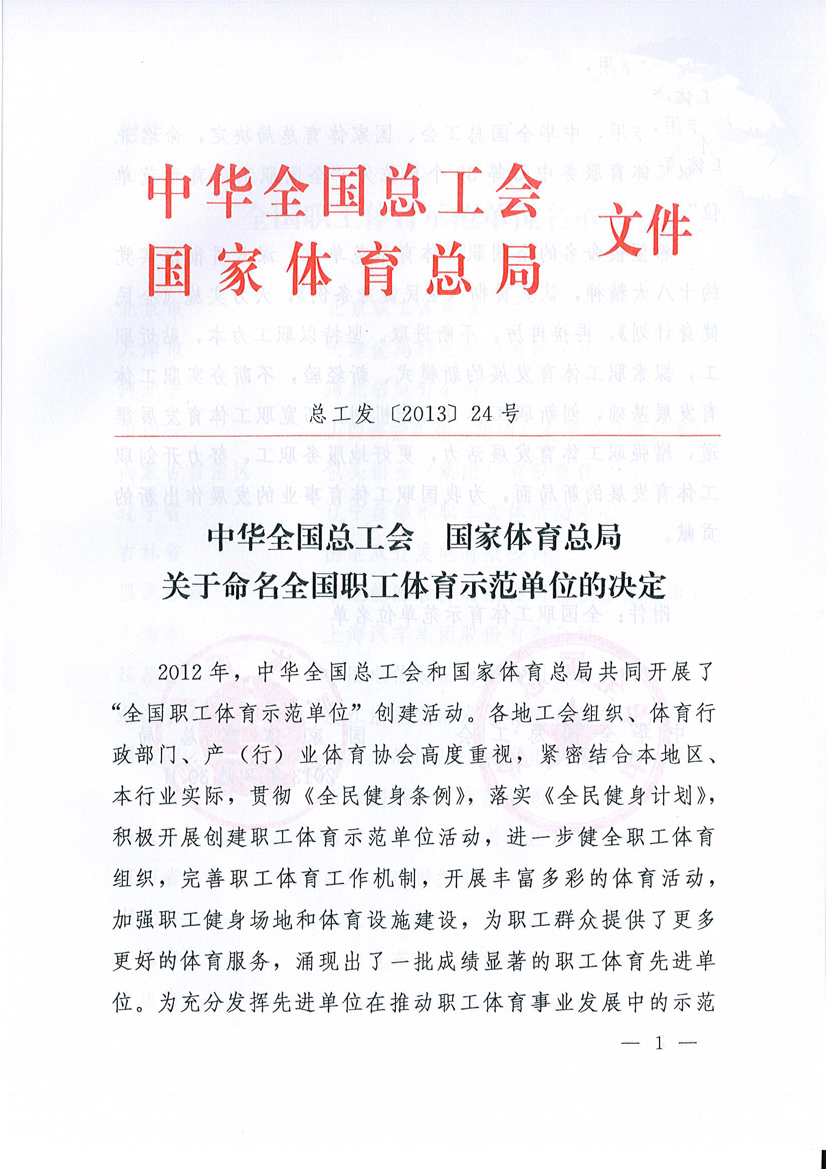 公司榮獲“全國職工體育示范單位”榮譽(yù)稱號