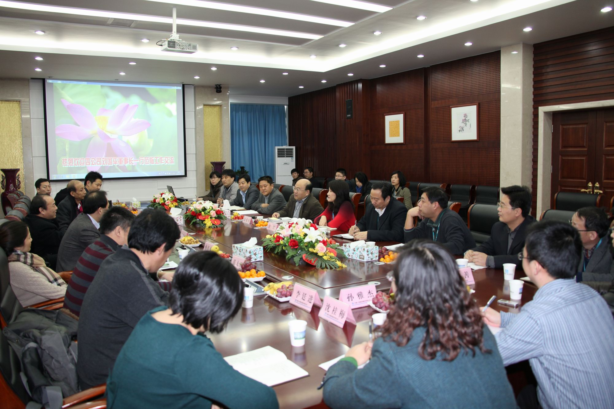 在互相介紹了各公司人員后,徐董事長表達(dá)了對于四公司各位領(lǐng)導(dǎo)的歡迎,劉董事長也對公司各位領(lǐng)導(dǎo)及同事放棄周末時間參加交流活動表示了感謝。