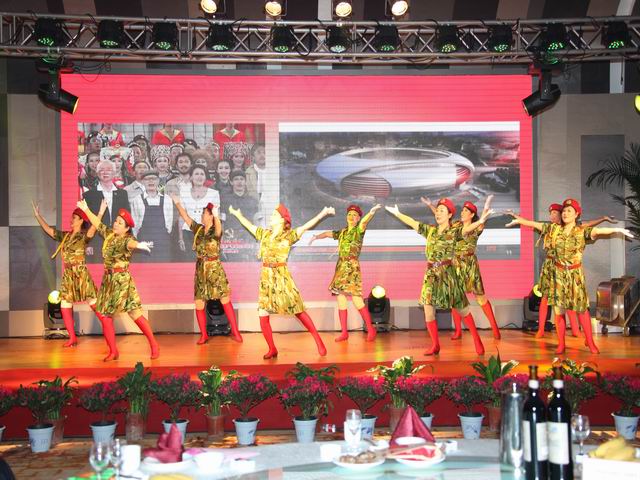 團(tuán)拜會(huì)演出在富有激情的舞蹈《南非風(fēng)情》中拉開(kāi)了帷幕。整臺(tái)演出精彩紛呈,高潮迭起。員工自編自演的各類節(jié)目豐富多彩,幸運(yùn)大抽獎(jiǎng)更是讓員工驚喜連連,演出現(xiàn)場(chǎng)歡聲笑語(yǔ)不斷。相聲《咱公司的那點(diǎn)事》、小品《牛郎與織女》、啞劇《候車室的故事》讓現(xiàn)場(chǎng)觀眾笑成一片;歌曲《相親相愛(ài)》唱出了一公司員工團(tuán)結(jié)互助是一家人的心聲;歌伴舞《荷塘月色》在現(xiàn)場(chǎng)燈光和舞臺(tái)的配合下,為大家呈現(xiàn)了一幅唯美的畫面;別具風(fēng)格的三句半《公司喜事多》,讓大家過(guò)了一把情景劇版三句半隱;情景詩(shī)朗誦《閃亮的日子 閃亮的青春》則為大家講述了一群年輕人到工地后半年的切身感受;歌手楊坤的《無(wú)所謂》被演員模仿的惟妙惟肖,足以以假亂真;舞蹈串燒《青春旋律》讓大家感受到了公司年輕人的青春活力;小品《施工情》講述了公司員工舍小家顧大家、令行禁止、使命必達(dá)的精神,得到了現(xiàn)場(chǎng)觀眾的共鳴。演出在氣勢(shì)磅礴的《走向復(fù)興》中圓滿落幕,出席團(tuán)拜會(huì)的領(lǐng)導(dǎo)同志走上舞臺(tái),同全體演員合影留念。