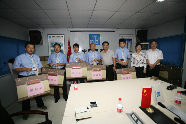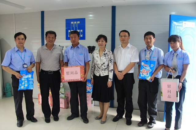 省總工會(huì)常委、生產(chǎn)保護(hù)部部長(zhǎng)周克民到項(xiàng)目部送清涼