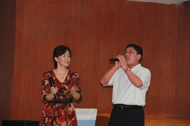 “揮揮手微笑著告別昨天,擁抱更蔥蘢的未來”,19點30分,晚會在一首《最美的答案》中拉開序幕。隨后大家紛紛亮出自己的才藝,模仿大比拼、小品、歌劇、合唱等精彩的節(jié)目將晚會逐步推入高潮。新員工王政模仿的費玉清,無論從聲音還是形體動作上都惟妙惟肖,讓大家贊口不絕。小品《一公司小夫妻》采用經(jīng)典――《實話實說》風(fēng)格,演繹了大家眼中的一公司,其中的精彩對話讓大家捧腹。教官團隊表演的格斗、拳術(shù)、棍術(shù)也讓大家大開眼界,為晚會增添了另一道光彩。面對現(xiàn)場熱烈的氣氛,公司領(lǐng)導(dǎo)也紛紛上臺獻上了精彩的表演,將整個晚會推向另一個高潮。董事長李永明為大家傾情演唱了《雨花石》和《活出個樣子來給自己看》,希望新員工們像雨花石學(xué)習(xí),經(jīng)得住平凡與寂寞,在平凡的崗位上做出不平凡的業(yè)績。黨委書記許紅聲情并茂,為大家朗誦了詩歌《青春萬歲》,展現(xiàn)了青春的無限美好與活力,她還演唱了《隱形的翅膀》,鼓勵大家在逆境中也要善于看到希望,堅強的奮斗下去。人力資源總監(jiān)王有標(biāo)也為大家演唱了《凡人歌》,贏得了陣陣掌聲。培訓(xùn)人員工作團隊也為大家獻上了《相逢是首歌》。