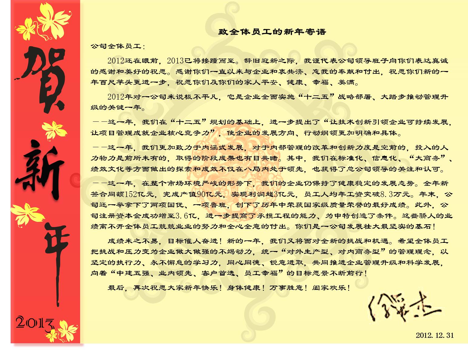 董事長致全體員工的新年寄語