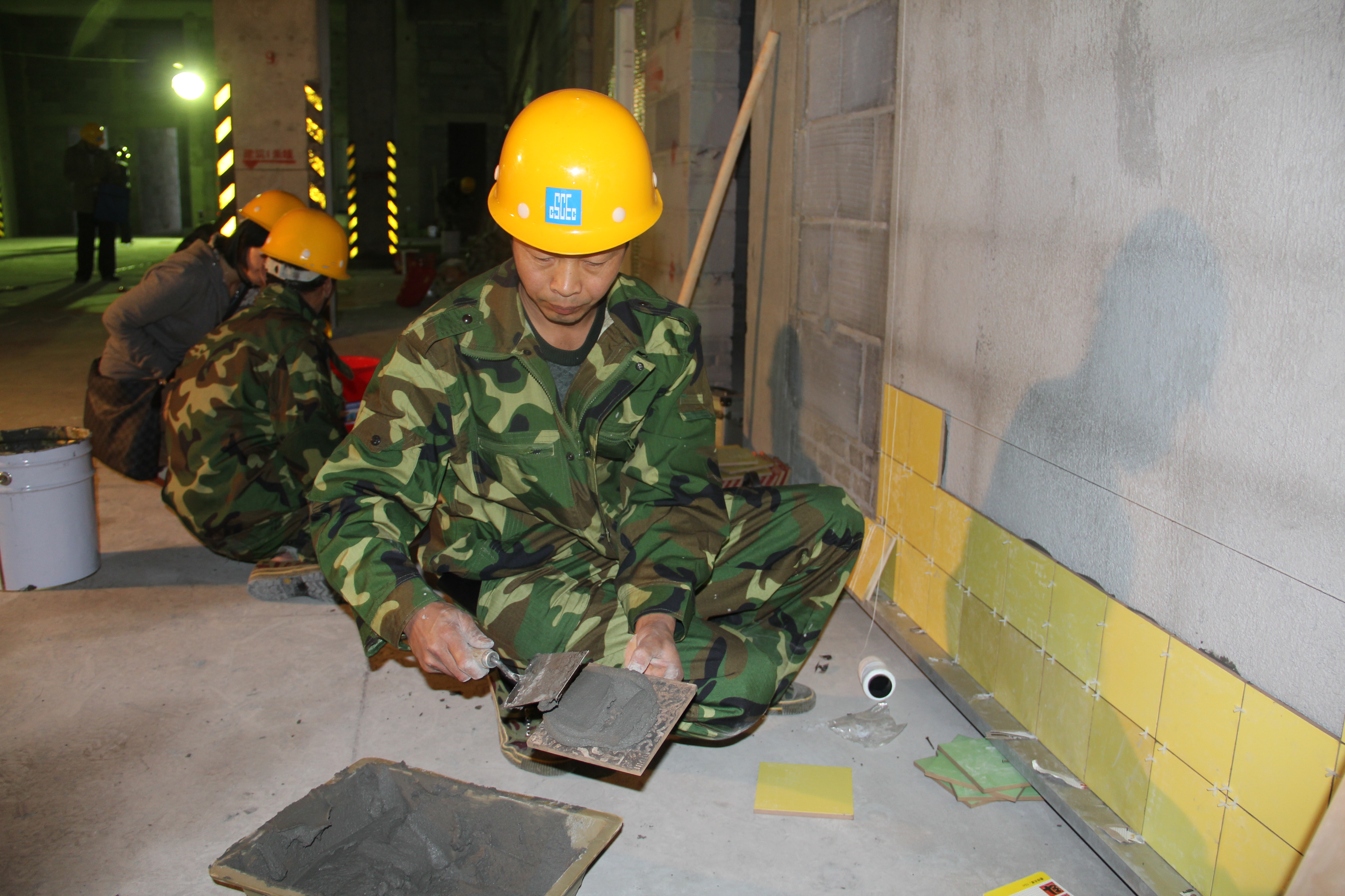 寧總首先致開幕詞,裁判員代表、勞務(wù)工人代表分別進(jìn)行了宣誓。上午9時整,公司工會辦公室副主任畢延寶宣布比賽正式開始。本次比賽分為理論知識考試和技能實(shí)操比賽,比賽工種包括砌筑工、鑲貼工。在作業(yè)比賽中,參賽的勞務(wù)工人紛紛展示了各自精湛的技藝,令在場的觀摩人員連聲稱贊,各比賽團(tuán)隊為充分展現(xiàn)自身實(shí)力,均拿出了“看家本領(lǐng)”,技能比賽進(jìn)行得十分激烈。
