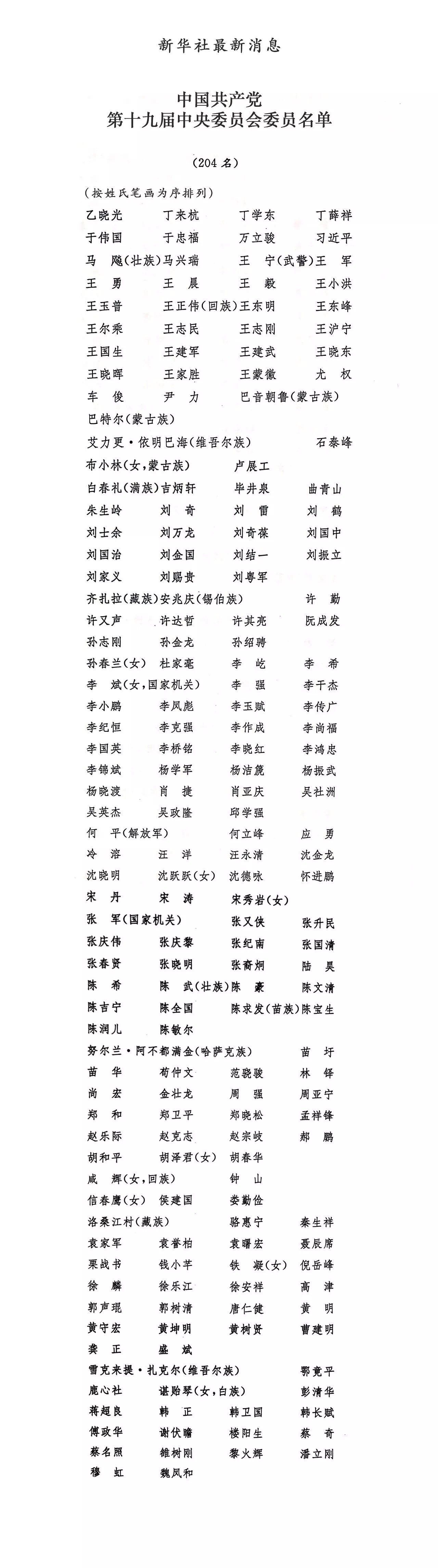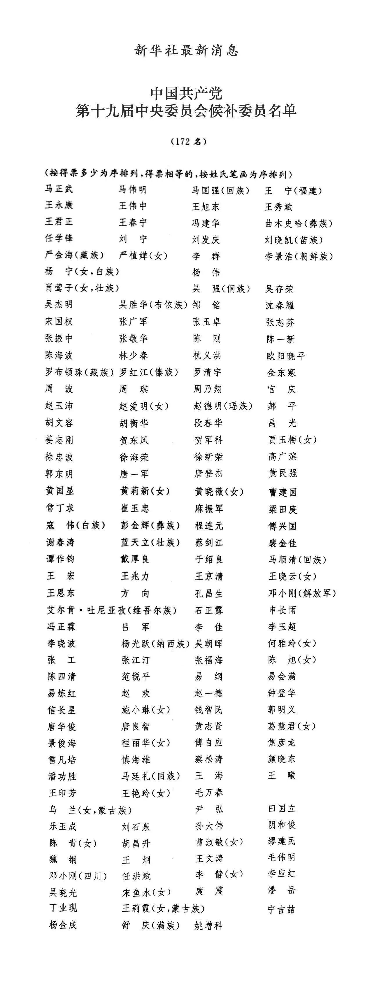 官慶當(dāng)選為十九屆中央委員會(huì)候補(bǔ)委員