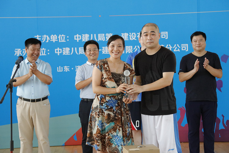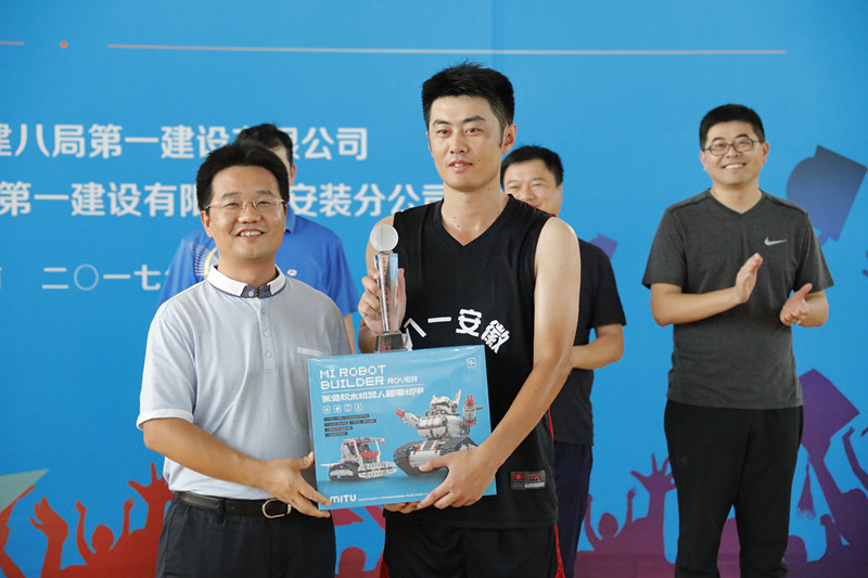 一公司安裝分公司黨總支書記、工會主席梁忠誠為最有價(jià)值球員(MVP)頒獎(jiǎng)