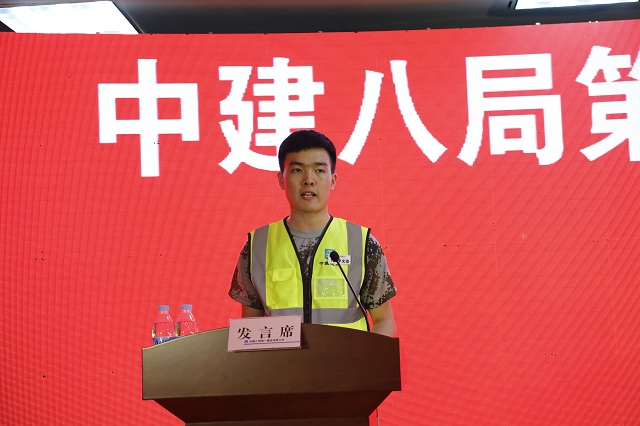 新員工代表李文豪在開班儀式上發(fā)言并表示將不負(fù)公司期望,認(rèn)真對(duì)待崗前培訓(xùn),適應(yīng)公司管理制度,融入公司管理文化,爭(zhēng)做八局鐵軍的合格接班人。