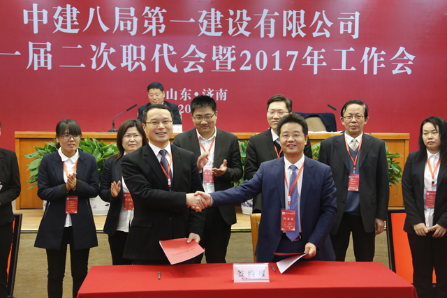 董文祥就十一屆一次職代會提案落實情況、十一屆二次職代會提案審查情況作了報告。公司黨政領(lǐng)導(dǎo)班子作了廉政承諾,領(lǐng)導(dǎo)班子及成員進(jìn)行了述職述廉,與會職工代表作了民主評議。會上,河南分公司三門峽萬達(dá)項目、安徽人保項目、北京分公司物資設(shè)備部、廣東分公司馬會項目分別就總承包管理、設(shè)計+BIM、以鋼代木、項目資金策劃進(jìn)行了經(jīng)驗交流,13個分公司作了述職報告。大會表彰了先進(jìn),進(jìn)行了項目兌現(xiàn)。會議期間,公司黨政領(lǐng)導(dǎo)與基層單位簽訂了集體合同、經(jīng)營目標(biāo)責(zé)任書。