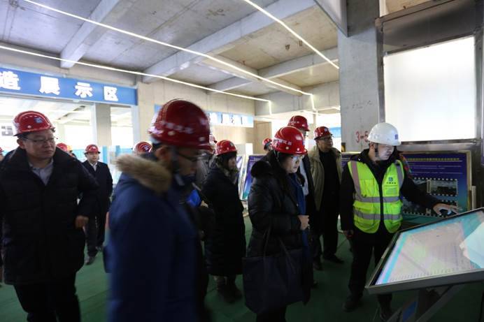 閻東星一行在項(xiàng)目管理人員的引導(dǎo)下,首先赴施工現(xiàn)場(chǎng)進(jìn)行實(shí)地考察。項(xiàng)目部管理人員對(duì)工程概況、現(xiàn)場(chǎng)布置、施工科技創(chuàng)新、智慧建造對(duì)抗震措施的促進(jìn)作用及取得的榮譽(yù)等內(nèi)容向閻東星一行進(jìn)行詳細(xì)匯報(bào)。隨后,閻東星一行參觀(guān)了項(xiàng)目智慧建造體驗(yàn)館,聽(tīng)取了項(xiàng)目部管理人員對(duì)BIM、VR、AR和互聯(lián)網(wǎng)的融合與應(yīng)用的講解,并了解其在綠色施工、質(zhì)量管理、安全管理、科技管理和總承包管理五大模塊的應(yīng)用以及研發(fā)。