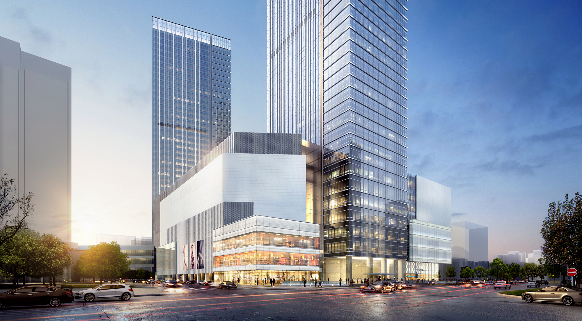 本工程總建筑面積約39萬㎡,由兩棟超高層塔樓和裙房組成。1#塔樓為5A級寫字樓,主體高度185m。2#樓為超高層公寓,高度176米。商業(yè)裙房地下3層,地上8層,結(jié)構(gòu)高度46.15m。