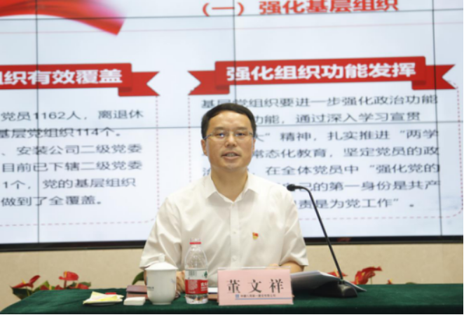 公司黨委書記、董事長董文祥以“以十九大精神為指引,持之以恒全面從嚴治黨,馳而不息全面從嚴治企”為主題講授“七一”專題黨課,黨課內容分為“三原色”和“四基石”兩部分。