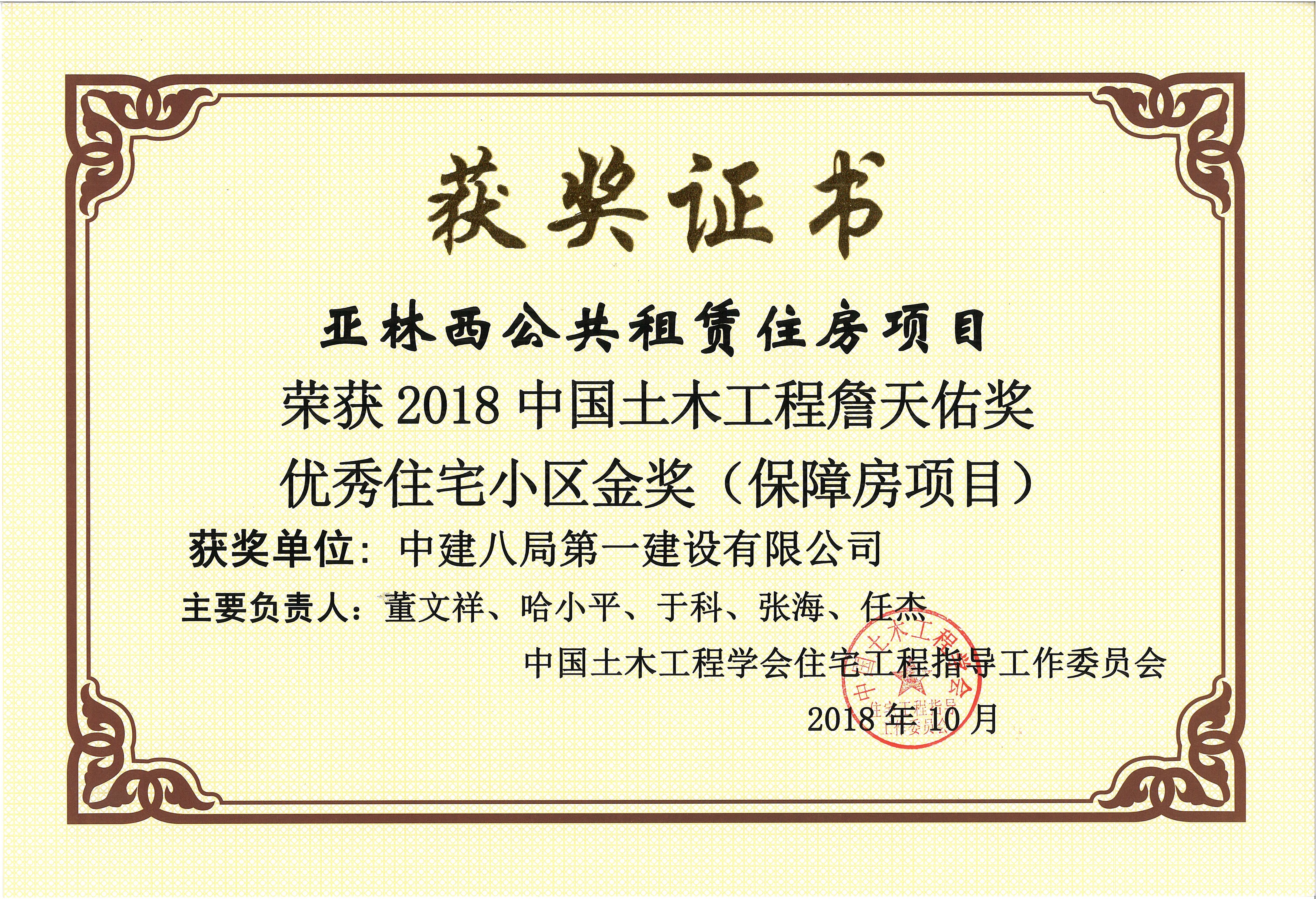 11月1日,“2018中國土木工程詹天佑獎優(yōu)秀住宅小區(qū)技術(shù)交流會暨頒獎儀式”在北京舉行,公司亞林西公共租賃住房項目從全國眾多優(yōu)秀項目中脫穎而出,獲此殊榮!