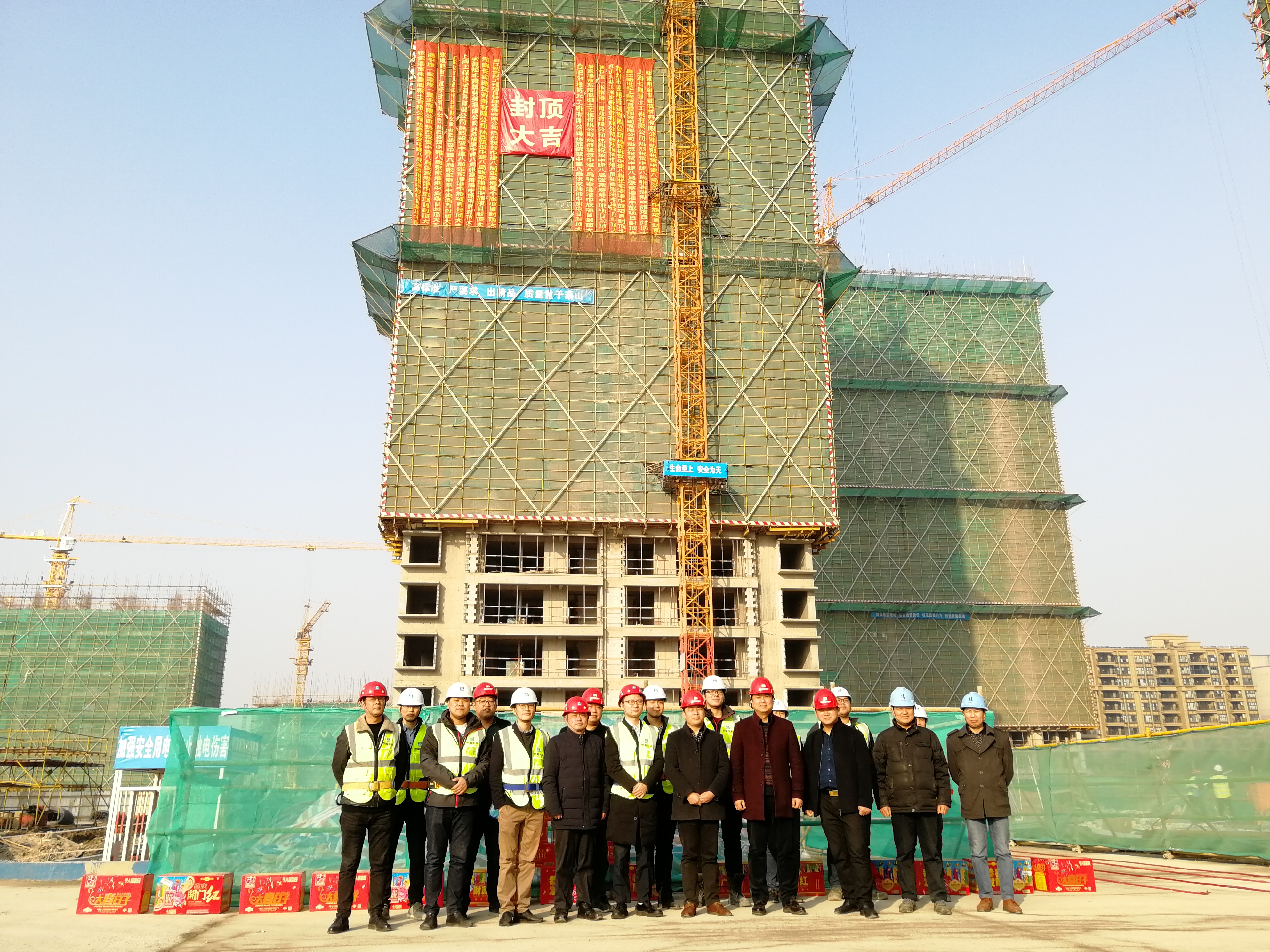 1月18日下午15:18,張家港港中旅項(xiàng)目進(jìn)行了主體結(jié)構(gòu)封頂儀式。張家港港中旅項(xiàng)目建筑面積17.7萬平方米,其中有5棟31-34層高層,4棟12層高層。