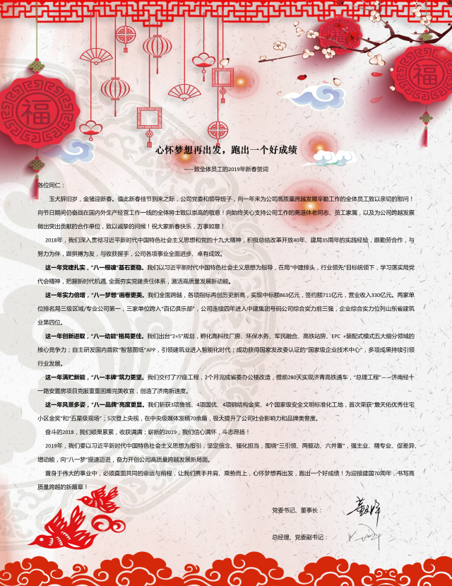 心懷夢想再出發(fā),跑出一個好成績——致全體員工的2019年新春賀詞