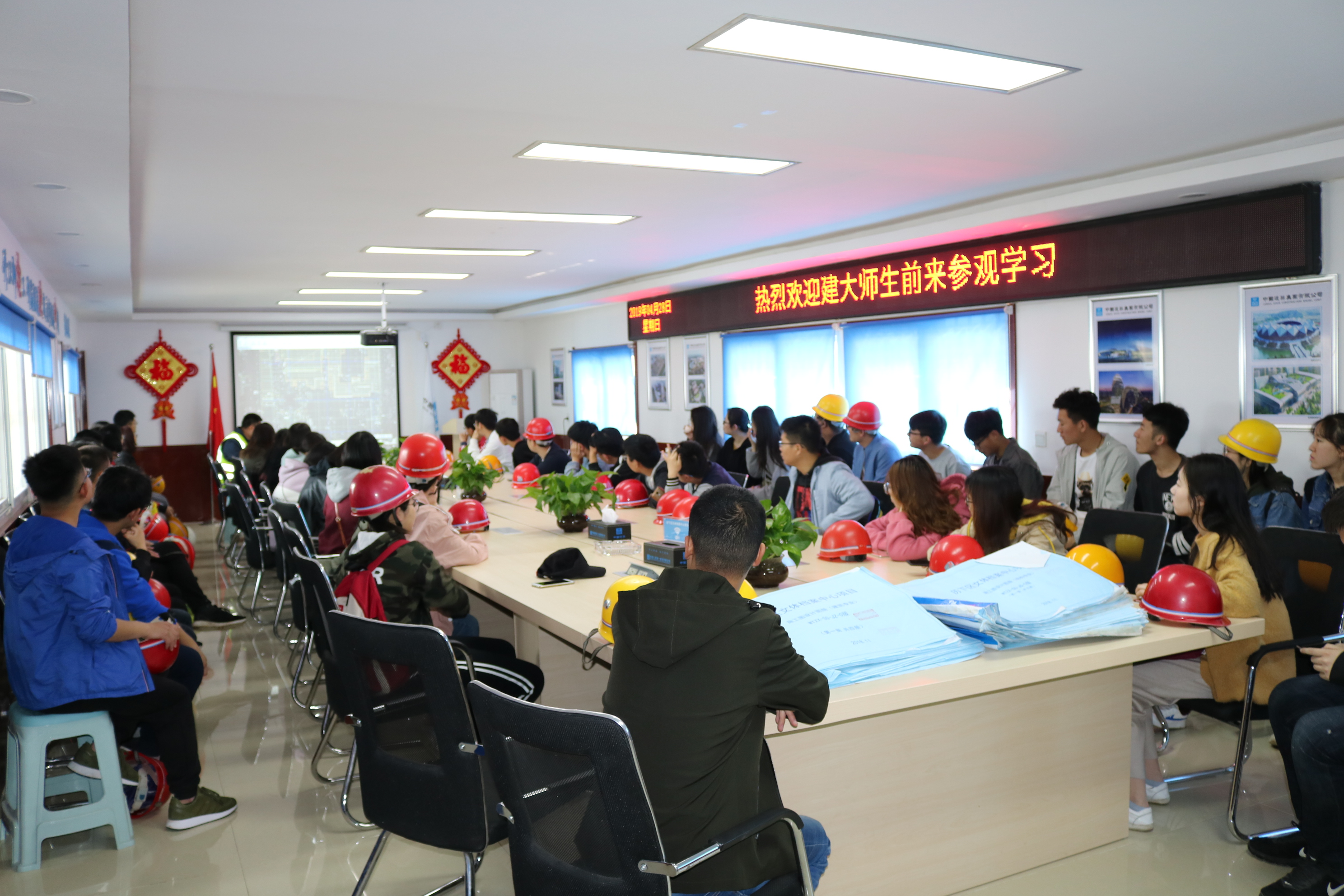 山東建筑大學(xué)師生到達(dá)現(xiàn)場后,金林林首先在項(xiàng)目會議室向全體師生詳細(xì)介紹了項(xiàng)目概況,并結(jié)合現(xiàn)場情況,對C60高強(qiáng)度混凝土以及后續(xù)施工過程中使用的ALC板墻等材料進(jìn)行重點(diǎn)介紹。(王曦)