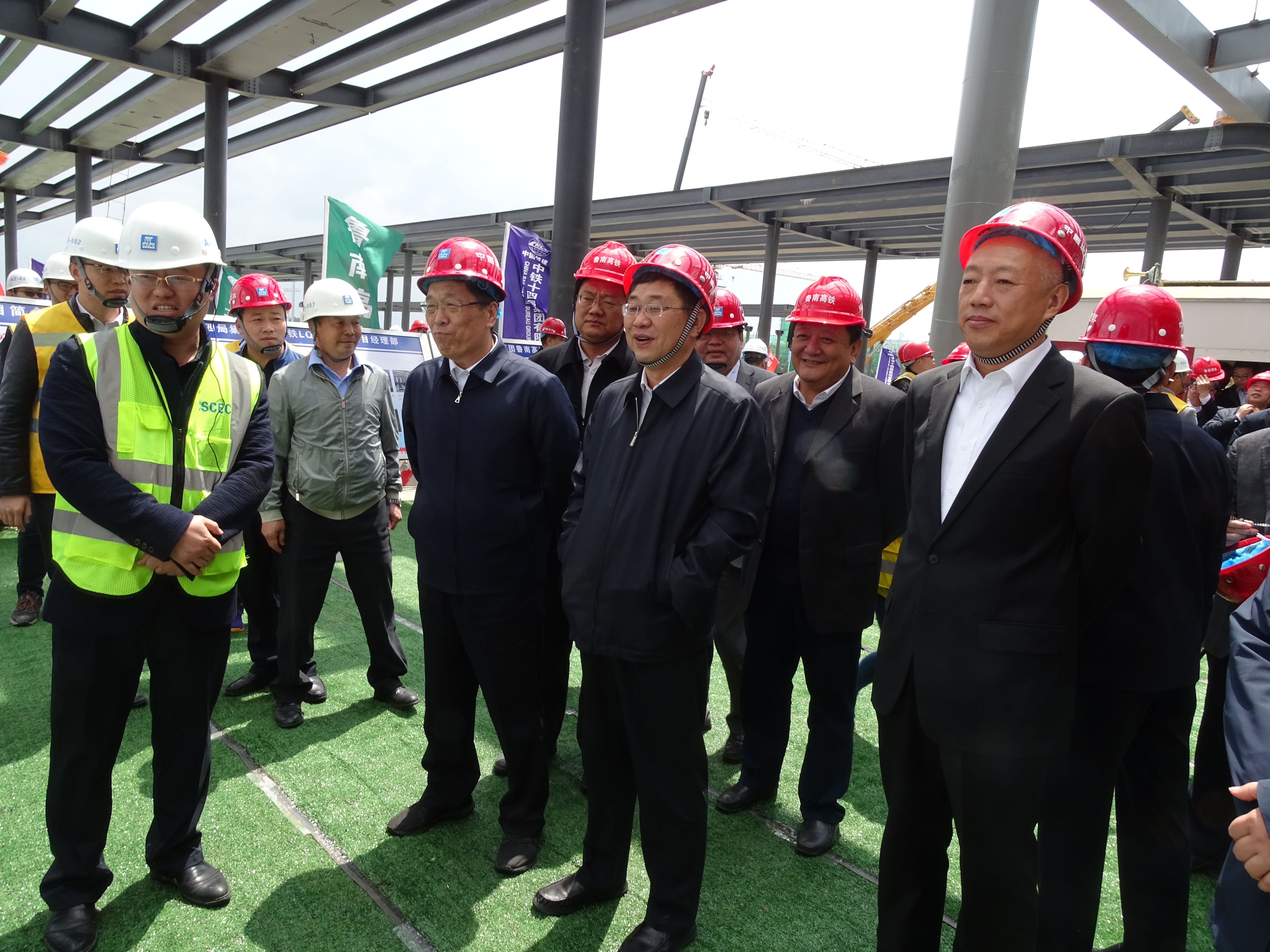 4月28日,中國鐵路總公司副總經(jīng)理王同軍,工管中心主任李志義,山東省政府黨組成員凌文,省交通運(yùn)輸廳廳長江成,臨沂市委書記王玉君,臨沂市長孟慶斌,濟(jì)南鐵路局總經(jīng)理王新春,山東鐵投集團(tuán)董事長姜長興,魯南高鐵公司董事長王基全等一行多人,添乘軌道車到魯南高鐵站房項(xiàng)目調(diào)研,中建山東投資有限公司董事長裴正強(qiáng)、中建八局一公司青島公司副總經(jīng)理邸國輝等陪同。