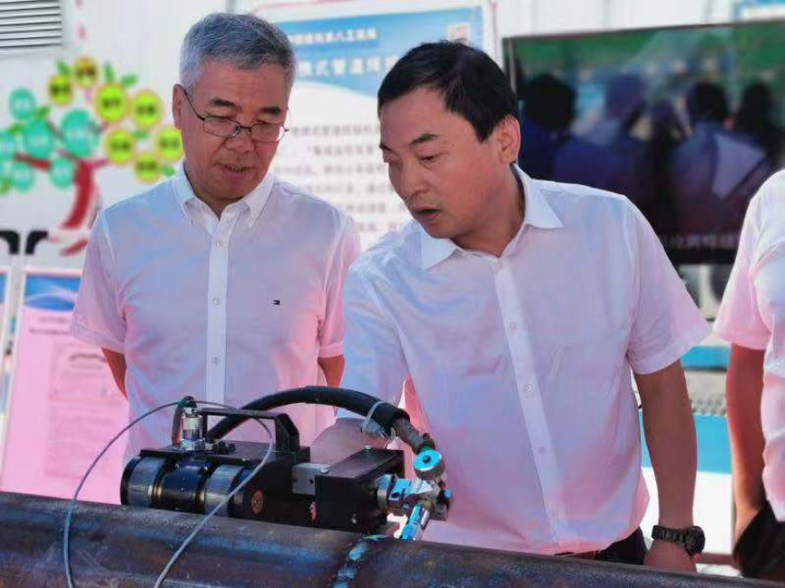 肖星、趙靜一行觀看智慧機(jī)器人現(xiàn)場操作