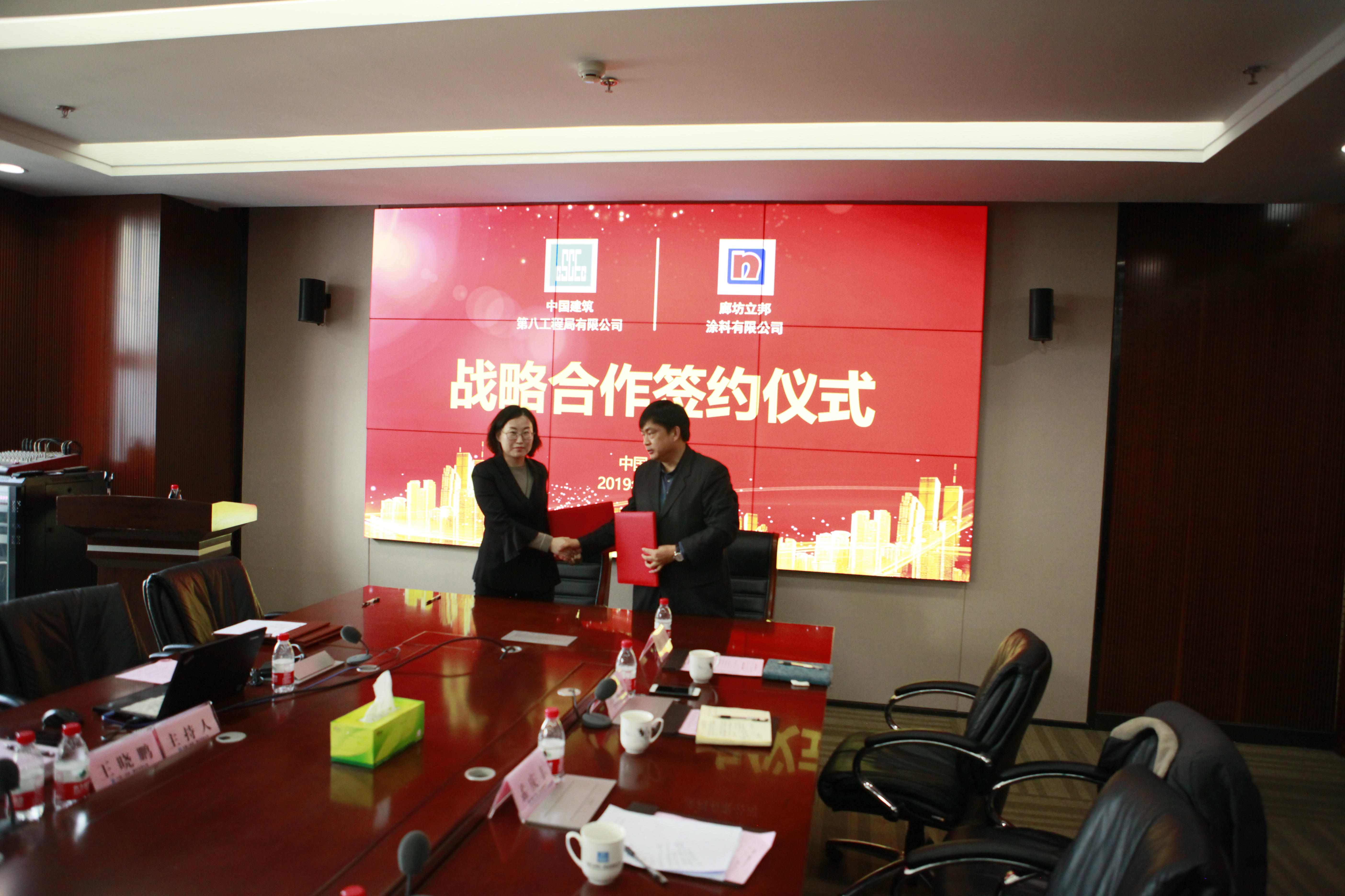 2019年12月6日,中建八局一公司戰(zhàn)略合作供應(yīng)商簽約儀式在濟(jì)南中建大廈21樓會(huì)議室成功舉行。參加本次戰(zhàn)略簽約的供應(yīng)商有:五礦鋼鐵有限責(zé)任公司、山東高速新材料科技有限公司、山東方圓建筑材料有限公司、廊坊立邦涂料有限公司,其中廊坊立邦涂料有限公司在公司戰(zhàn)略合作基礎(chǔ)上升級(jí)為局層級(jí)戰(zhàn)略合作。中建八局山東分局集采中心主任田華、公司采購(gòu)管理部經(jīng)理吳清龍、濟(jì)南公司總經(jīng)濟(jì)師張道超以及五礦鋼鐵公司總經(jīng)理張岑、山東高速新材料公司常務(wù)副總經(jīng)理李東明,山東方圓大區(qū)總監(jiān)邵震宇,廊坊立邦銷售總監(jiān)劉新輝等共計(jì)20余人參加簽約儀式,儀式由濟(jì)南公司物資設(shè)備部經(jīng)理王曉鵬主持。