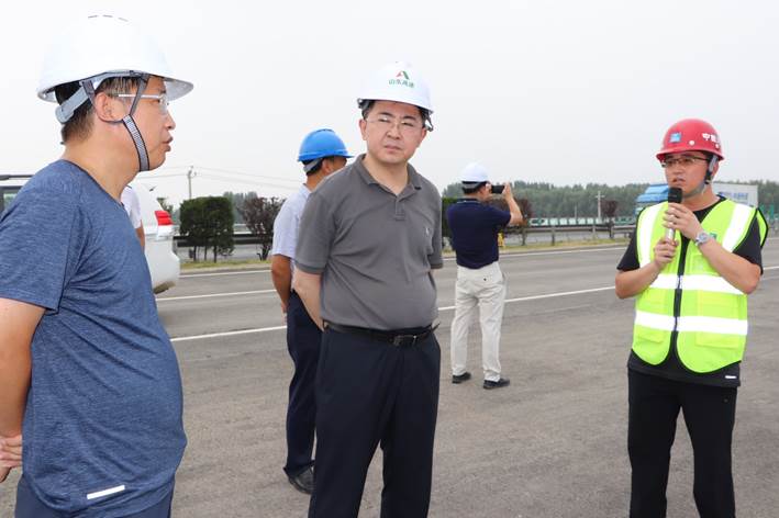 8月11日,山東高速建設(shè)管理集團(tuán)董事長(zhǎng)丁愛輝到京臺(tái)高速改擴(kuò)建項(xiàng)目二標(biāo)段檢查指導(dǎo)工作。