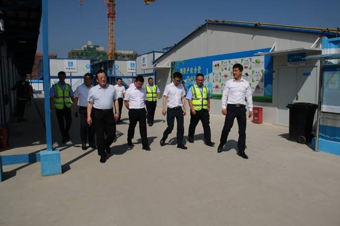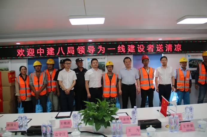 于金偉一行首先來到工人生活區(qū)參觀,深入了解一線工人們的吃、穿、用、住情況,對項目“工友村”的建設情況進行了詳細的了解,并聽取了項目運營情況作了整體匯報。于金偉對項目全體一線工人們表示感謝,并表達了對本項目的重視,為工人們發(fā)放防暑降溫物資,并囑托大家注意日常安全防護,做好防暑降溫工作。