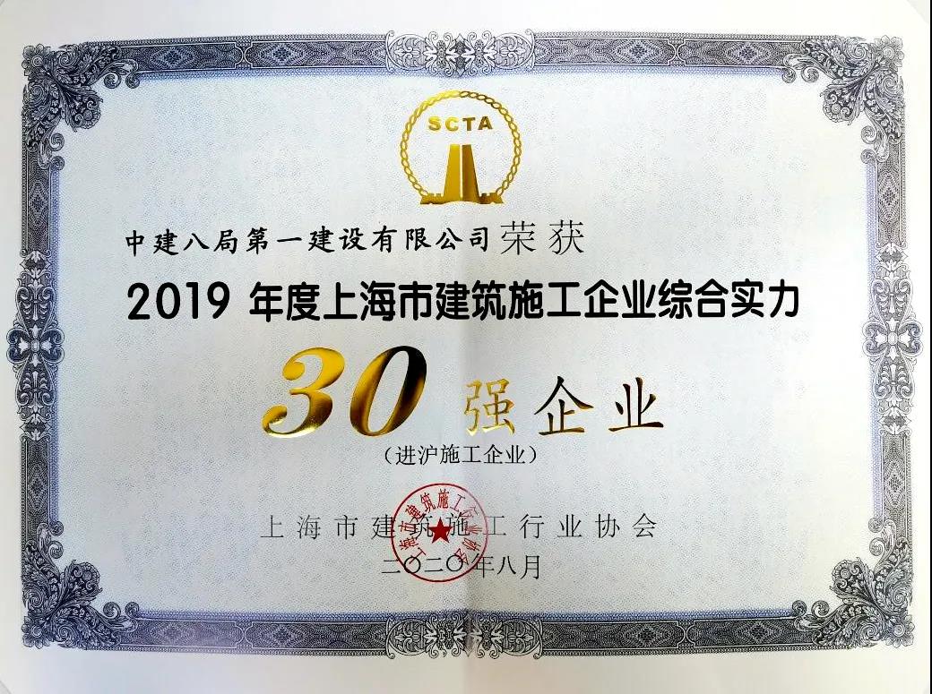 公司連續(xù)3年榮獲“上海市進(jìn)滬施工企業(yè)綜合實(shí)力30強(qiáng)”榮譽(yù)