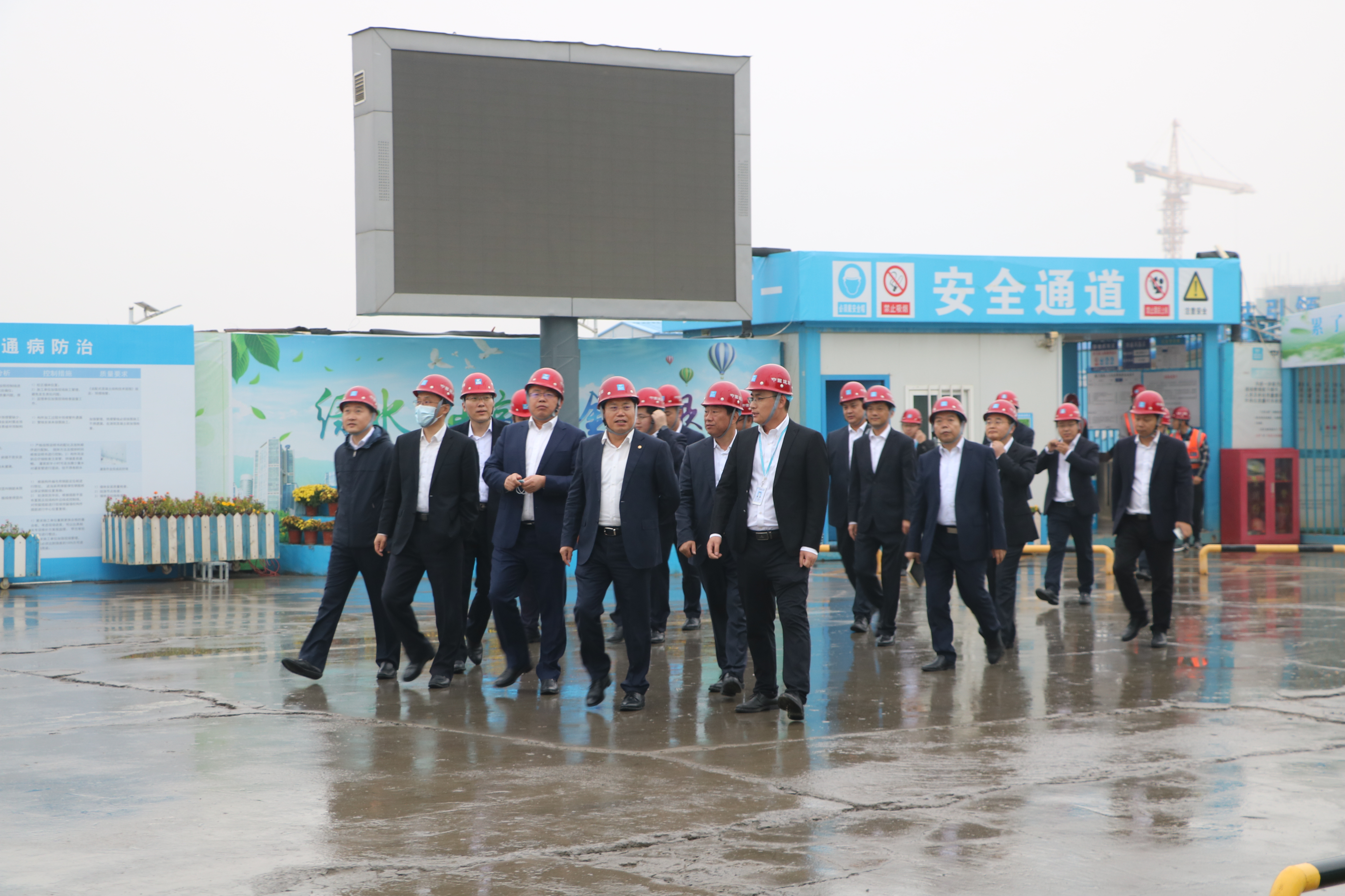 李永明一行抵達(dá)項(xiàng)目后,冒著綿綿秋雨直奔施工現(xiàn)場(chǎng),實(shí)地檢查了樣板區(qū)、觀摩區(qū)、實(shí)體施工區(qū)和鋼筋集中加工廠等區(qū)域,詳細(xì)了解金科苑項(xiàng)目的工程概況、工程進(jìn)度及履約情況。