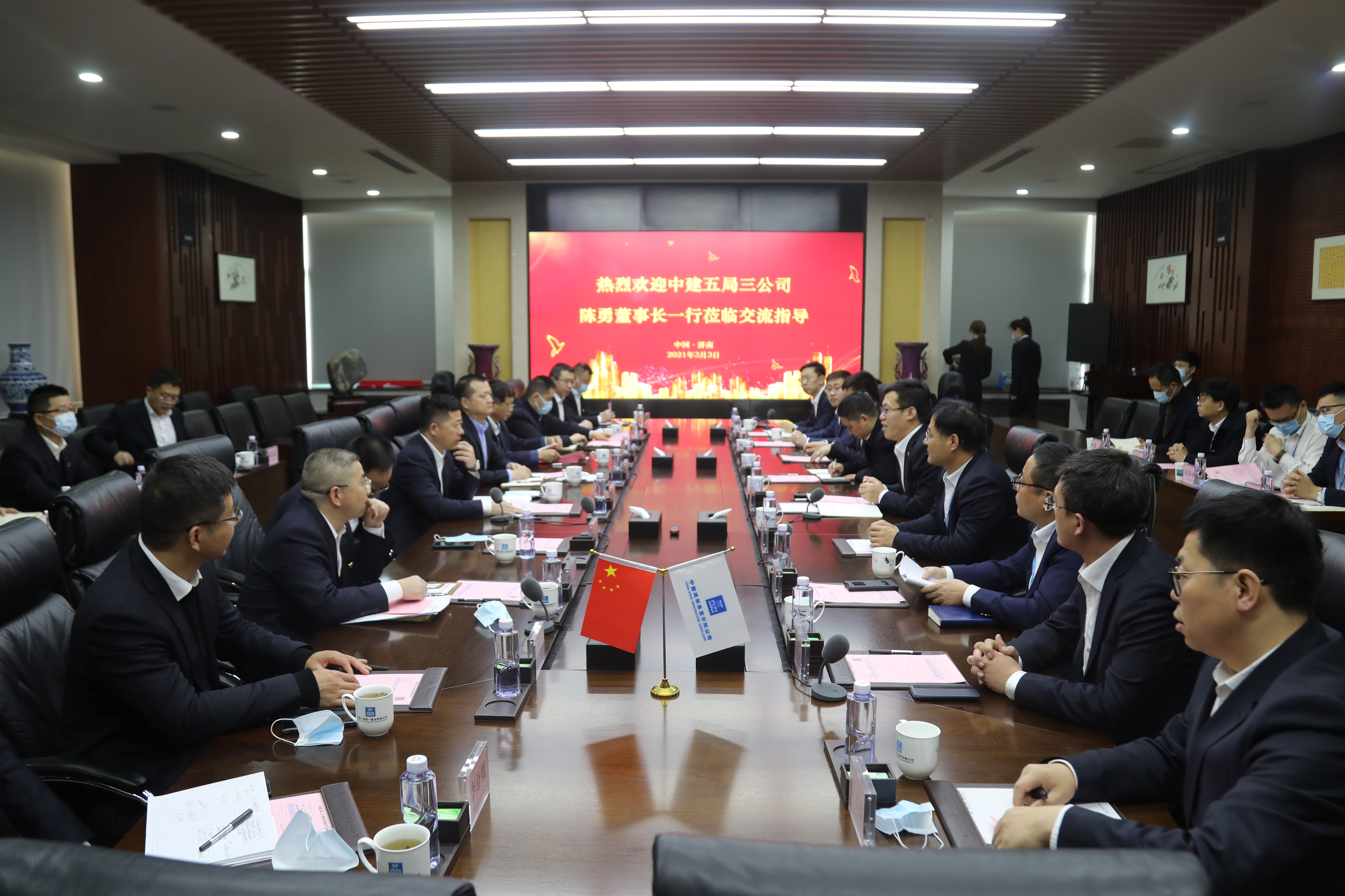3月3日,中建五局三公司黨委書記、董事長陳勇帶隊(duì),到訪中建八一總部開展工作交流。公司黨委書記、董事長齊朋熱情接待,雙方就進(jìn)一步開展合作進(jìn)行了深入交流。