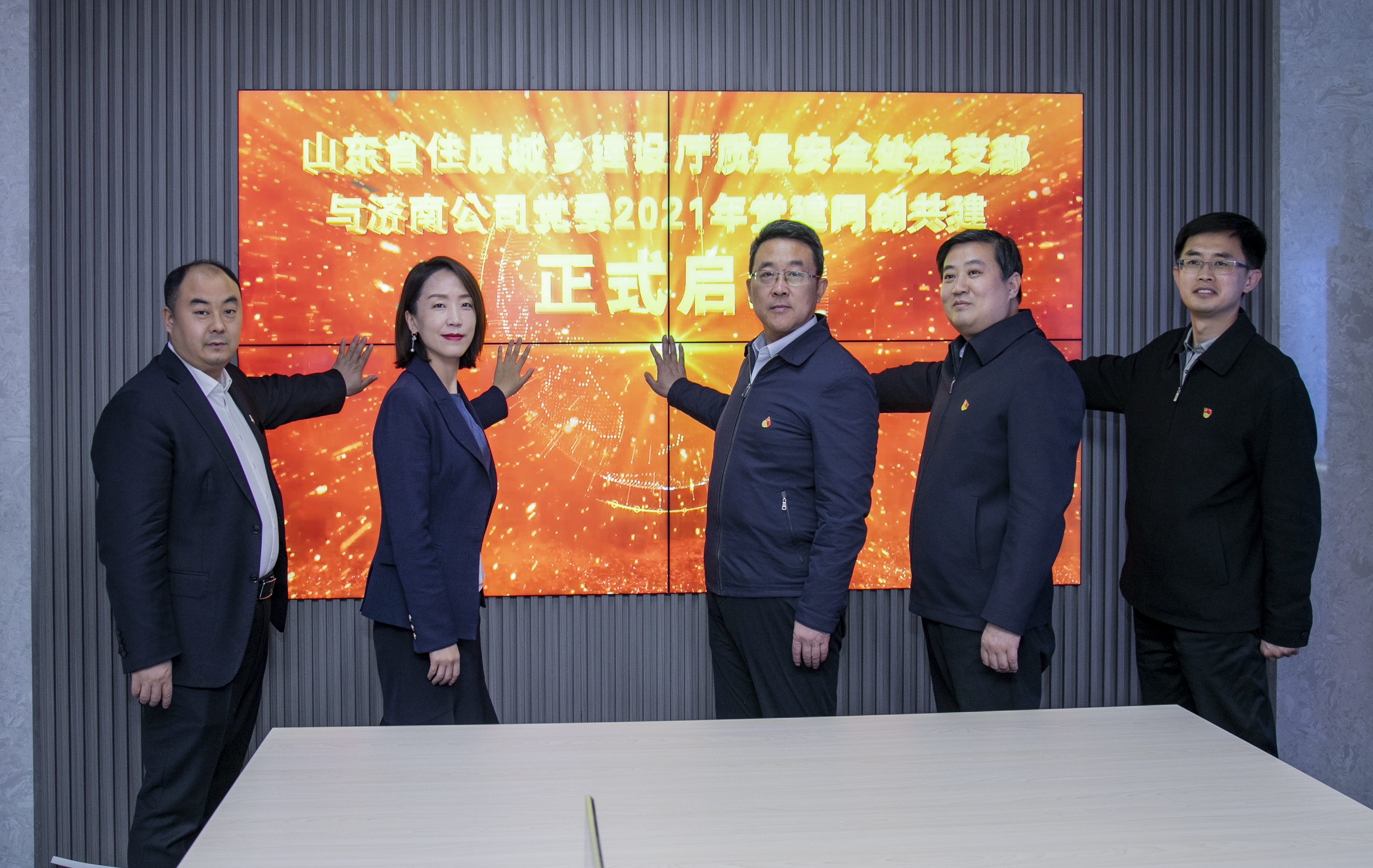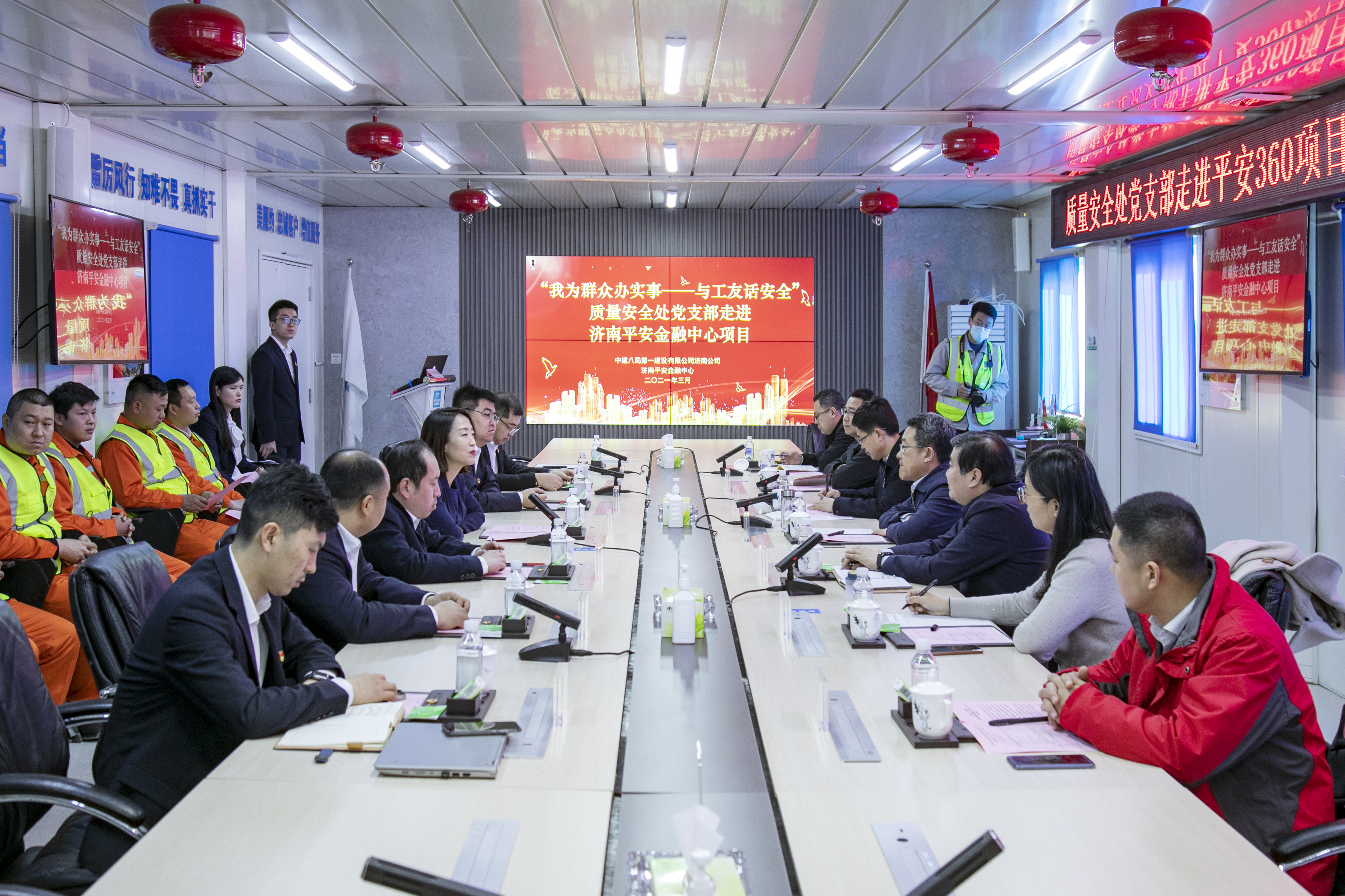 3月25日,在濟(jì)南中央商務(wù)區(qū)360米超高層項(xiàng)目,山東省住房和城鄉(xiāng)建設(shè)廳質(zhì)量安全處黨支部與中建八局一公司黨委開(kāi)展2021年度黨建同創(chuàng)共建啟動(dòng)儀式暨“我為群眾辦實(shí)事——與工友話安全”活動(dòng)。