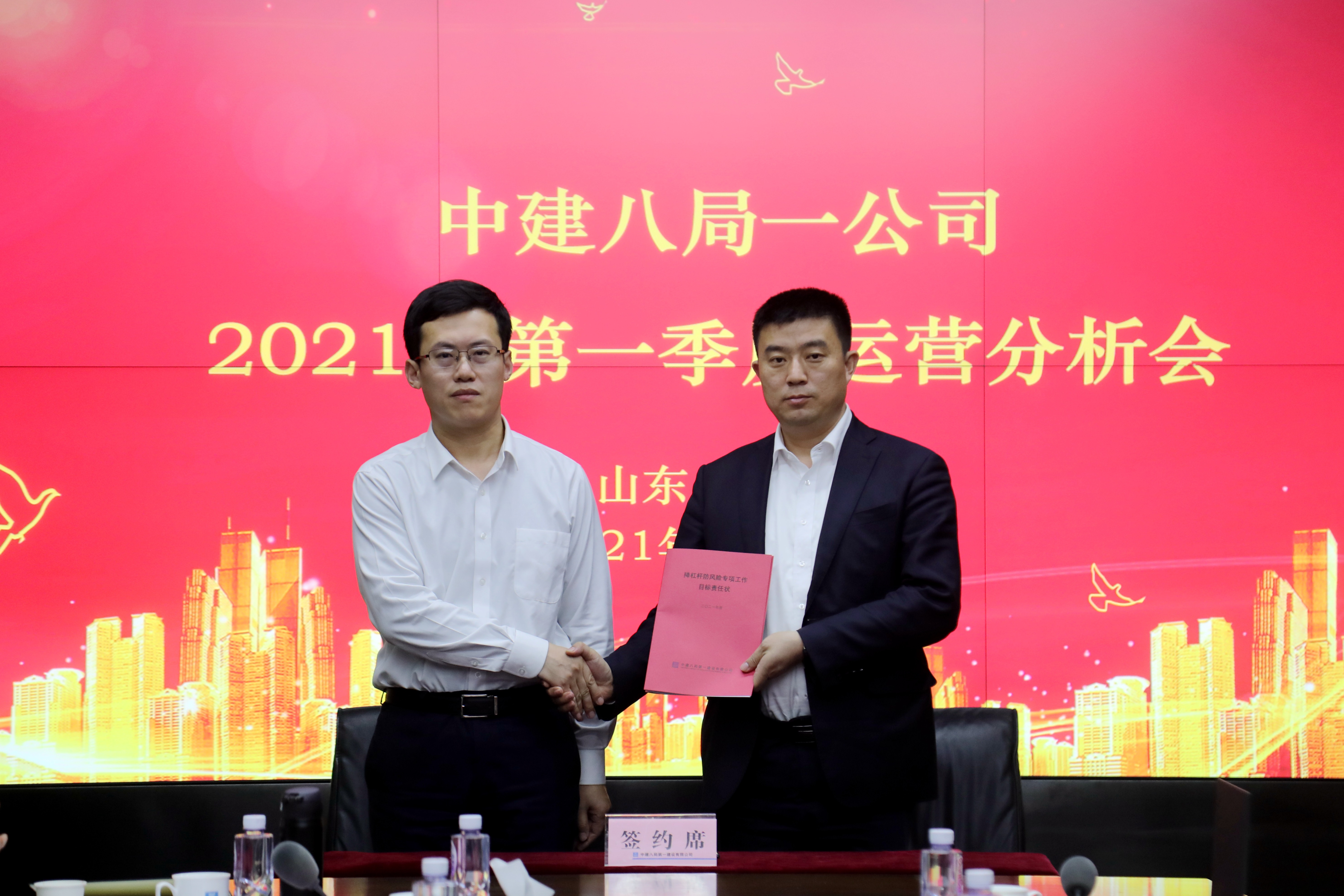 齊朋與濟南公司、華南公司兩家代表單位簽訂2021年度降杠桿防風險責任狀。