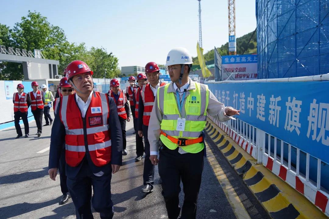 李永明一行抵達項目后,首先深入施工現(xiàn)場,詳細了解工程概況、施工進度、安全管理及質(zhì)量管控情況,實地檢查了安全制度執(zhí)行、安全人員配備及科技創(chuàng)新等工作。