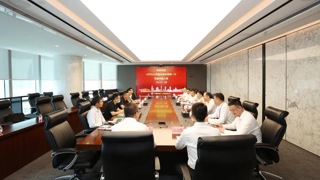中建八局黨委副書記、總經(jīng)理章維成與OPPO公司副總裁朱高領(lǐng)會談
