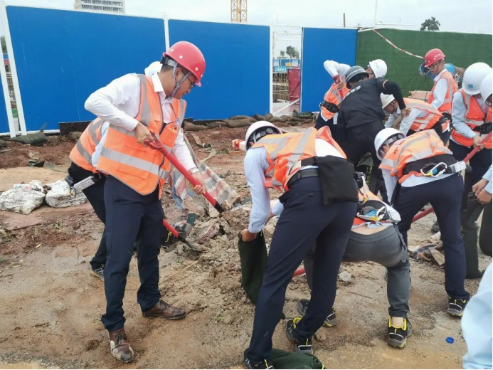 珠海橫琴科學(xué)城項(xiàng)目對(duì)現(xiàn)場(chǎng)、辦公區(qū)、生活區(qū)開(kāi)展防臺(tái)專(zhuān)項(xiàng)安全檢查,現(xiàn)場(chǎng)布設(shè)15kW污水泵4臺(tái),7.5kW污水泵12臺(tái),值班人員每1小時(shí)巡視匯報(bào)情況。安排轎車(chē)6輛、大巴車(chē)4輛50分鐘組織644名工人緊急撤離至安置點(diǎn),儲(chǔ)備1500桶泡面、30箱火腿腸、1800個(gè)面包、80箱礦泉水,滿(mǎn)足項(xiàng)目應(yīng)急需求。