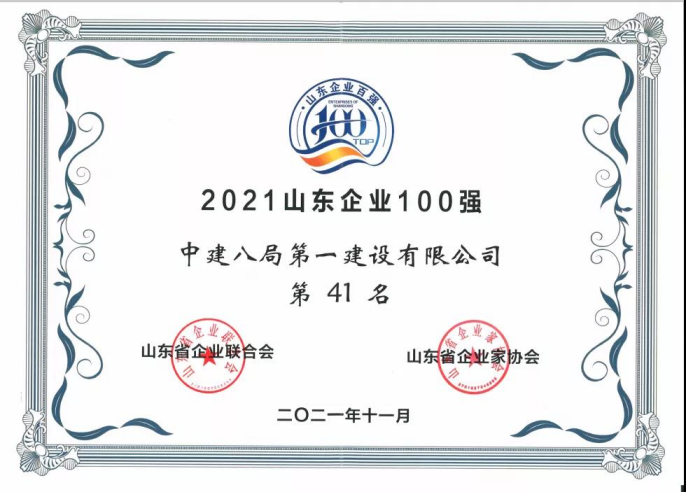 繼榮獲國(guó)資委“標(biāo)桿企業(yè)”、全國(guó)質(zhì)量獎(jiǎng)組織獎(jiǎng)等一系列重磅榮譽(yù)后,中建八一再度榮獲“2021年度山東省百?gòu)?qiáng)企業(yè)”,位列第41名。至此,公司已連續(xù)2年躋身山東省百?gòu)?qiáng)企業(yè)前50名!