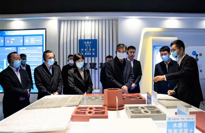 會(huì)談前,曾贊榮、單廣袖一行在中國建筑綠色產(chǎn)業(yè)園(濟(jì)南)調(diào)研了建筑產(chǎn)業(yè)化工廠、新型模架智造基地和幕墻產(chǎn)業(yè)基地,聽取產(chǎn)業(yè)園區(qū)生產(chǎn)建設(shè)情況匯報(bào),觀摩四代pc構(gòu)件生產(chǎn)線、自動(dòng)鋼筋加工生產(chǎn)線運(yùn)行情況,察看項(xiàng)目自主研發(fā)的智慧工廠管理平臺(tái),了解透光混凝土掛板、保溫一體化掛板等產(chǎn)品情況和項(xiàng)目年產(chǎn)能、生產(chǎn)規(guī)模等運(yùn)營情況。