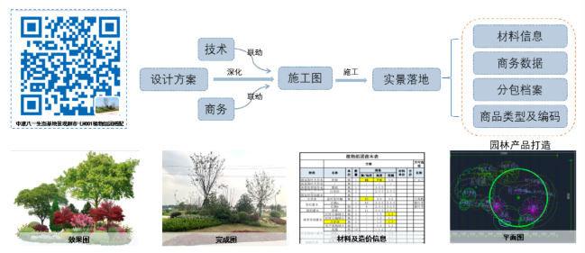 產(chǎn)品定制“身份號(hào)碼”,景觀“超市”自助結(jié)算,每一個(gè)商品都形成一個(gè)二維碼,分類編碼列入商品化圖冊(cè),客戶根據(jù)意向選取產(chǎn)品,項(xiàng)目操作拼接完成后,施工圖、造價(jià)、集采渠道、分包商選項(xiàng)等同步實(shí)現(xiàn),更適配EPC模式的操作方式。