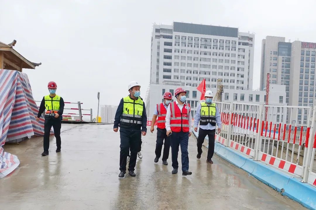 ?;瘧椩敿?xì)查看了濟(jì)南市第三人民醫(yī)院應(yīng)急醫(yī)學(xué)中心綜合樓項(xiàng)目的工程進(jìn)展、現(xiàn)場(chǎng)各工序穿插情況及危大工程管控情況。?;瘧椫赋觯B(tài)化做好疫情防控工作,項(xiàng)目在施工生產(chǎn)的同時(shí)要確保疫情防控不松懈,要持續(xù)優(yōu)化施工進(jìn)度,實(shí)現(xiàn)合理穿插、高效建造,以高標(biāo)準(zhǔn)、嚴(yán)要求對(duì)待安全管理工作,筑牢疫情、安全雙防線。