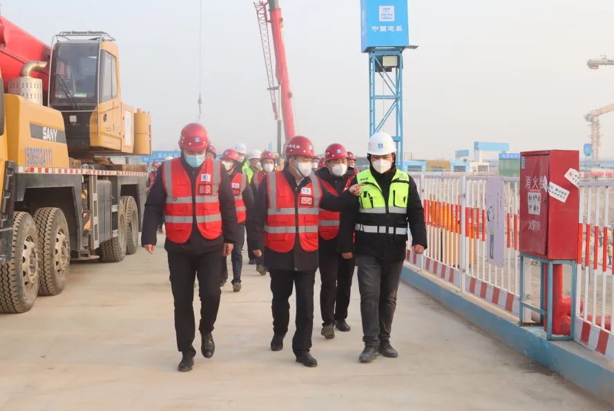 元旦假期,山東分局、華北分局、華南分局領導,中建八局一公司黨委書記、董事長齊朋,黨委副書記、總經理?;瘧椀阮I導班子到項目開展安全帶班檢查。