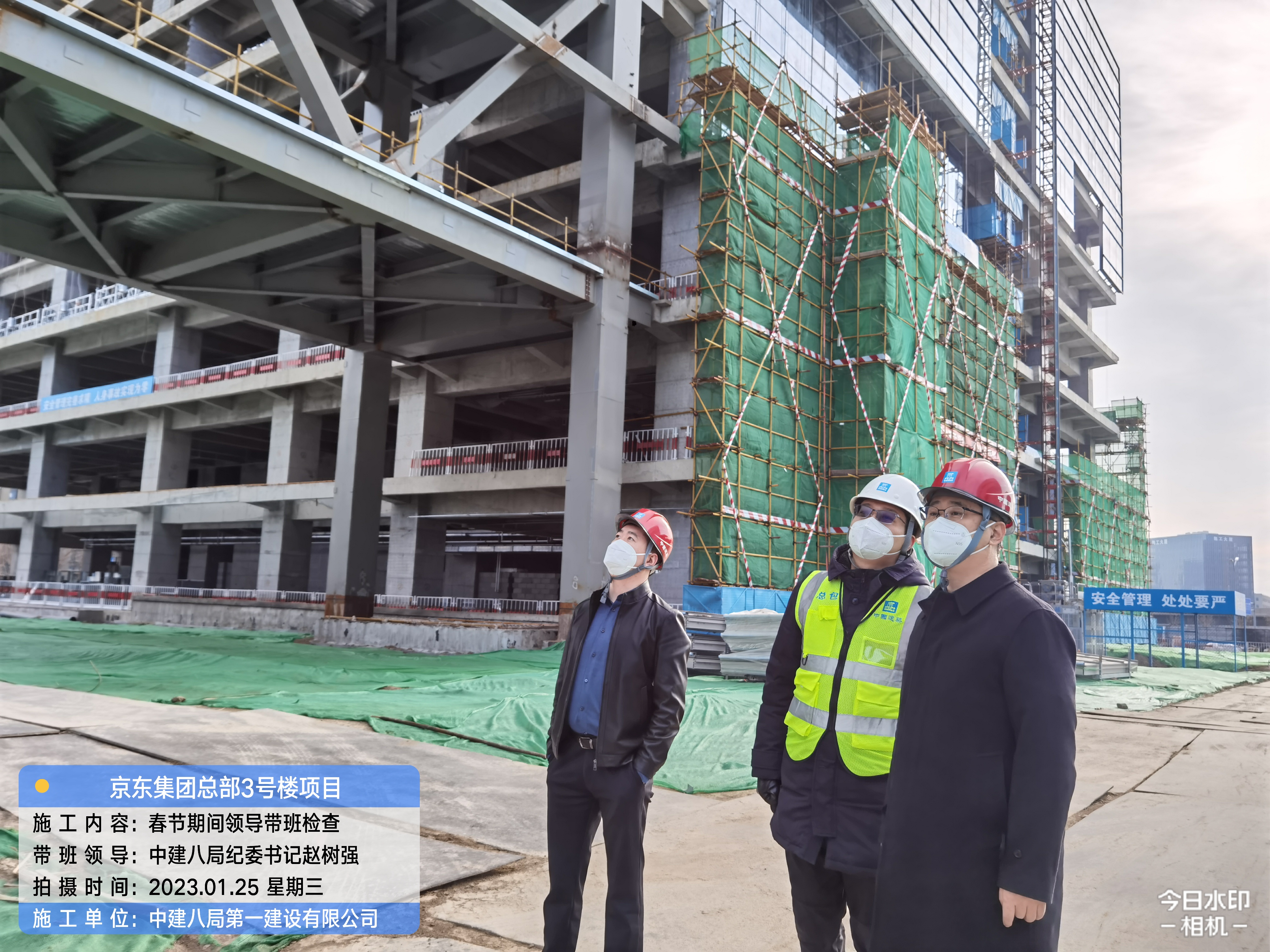 1月25日,中建八局紀(jì)委書記趙樹強到京東集團總部3號樓項目帶班檢查,看望慰問春節(jié)期間堅守一線的管理人員,中建八局一公司華北公司軍民融合事業(yè)部副總經(jīng)理張世龍、項目經(jīng)理程增龍及主要管理人員陪同。