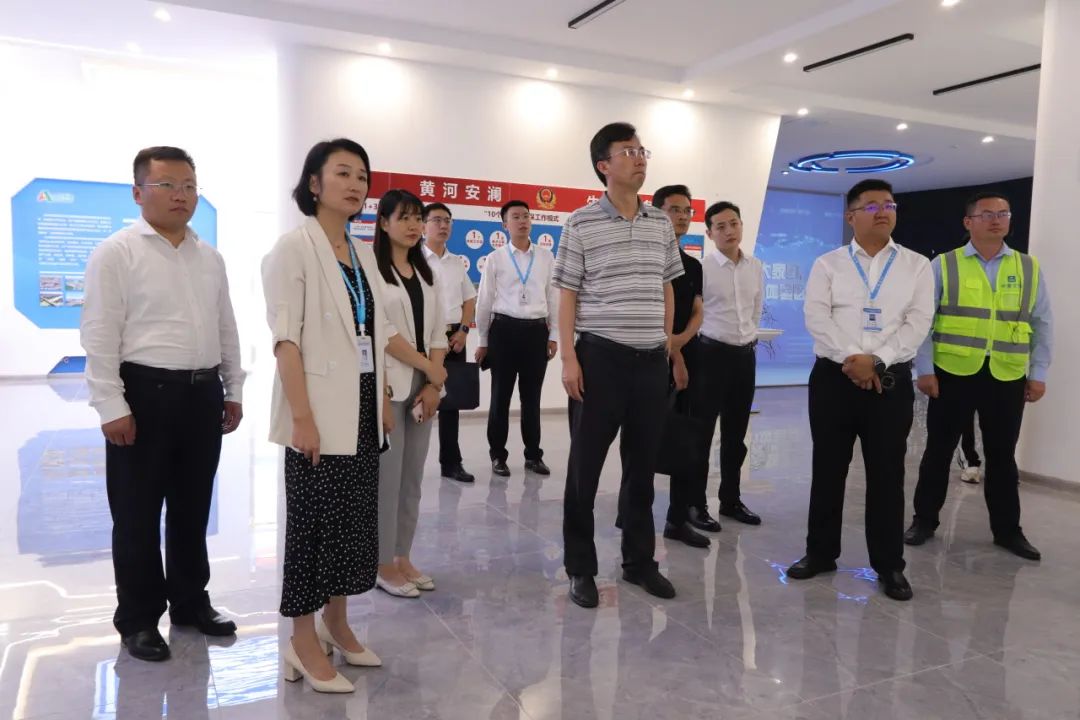 尚勝波一行參觀了項(xiàng)目綜合場站智慧管控中心,聽取項(xiàng)目零排放機(jī)制砂研制、頂推工藝情況介紹和智慧梁場、博士工作站運(yùn)營情況匯報。