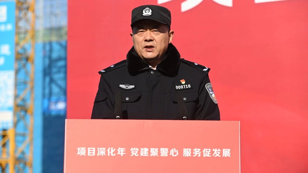 濟(jì)南市公安局重點(diǎn)工程保衛(wèi)支隊(duì)支隊(duì)長趙鋒,槐蔭分局政委鄭繼明,副局長陳永杰,市公安局重保支隊(duì)副支隊(duì)長范躍軍,山東省立三院事業(yè)發(fā)展部主任張璞,山東省大眾健康管理中心主任李令國,中建八局一公司紀(jì)委書記徐紅志,各單位相關(guān)負(fù)責(zé)人及現(xiàn)場工友共計(jì)300余人參加活動。