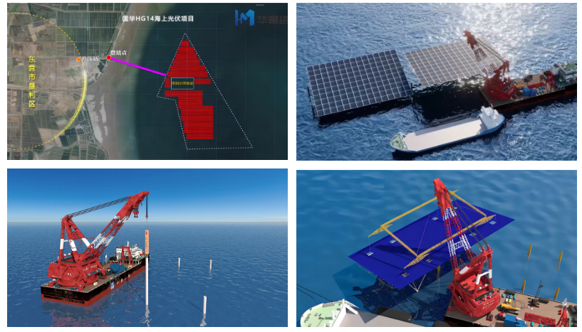 東營HG14海上光伏項目位于山東省東營市墾利區(qū)以東海域,中心離岸距離8km,規(guī)劃裝機容量100萬千瓦,采用分塊發(fā)電、集中并網(wǎng)方案,建成投產(chǎn)后,預(yù)計年可發(fā)電17.8億千瓦時,平均每年可節(jié)約標(biāo)準(zhǔn)煤約59.45萬噸,每年可減少CO2排放量約144.06萬噸。