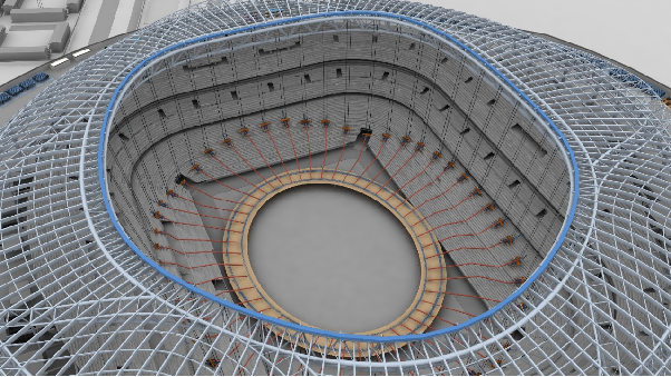 項(xiàng)目觀賽看臺(tái)超90%采用預(yù)制裝配式清水混凝土,是國內(nèi)首例在觀賽區(qū)高區(qū)部分,設(shè)置可拆卸式鋼結(jié)構(gòu)看臺(tái)的體育場,可臨時(shí)拆除方便殘疾人士觀賽,采用先進(jìn)的通風(fēng)控溫控濕系統(tǒng)以及透明膜結(jié)構(gòu)光照系統(tǒng),培育世界頂級足球場專業(yè)草坪。