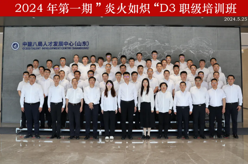 5月25日至26日,中建八局一公司2024年第一期“炎火如熾”D3職級培訓班在中建八局人才發(fā)展中心(山東)舉辦,公司D3職級干部共計70余人參培。